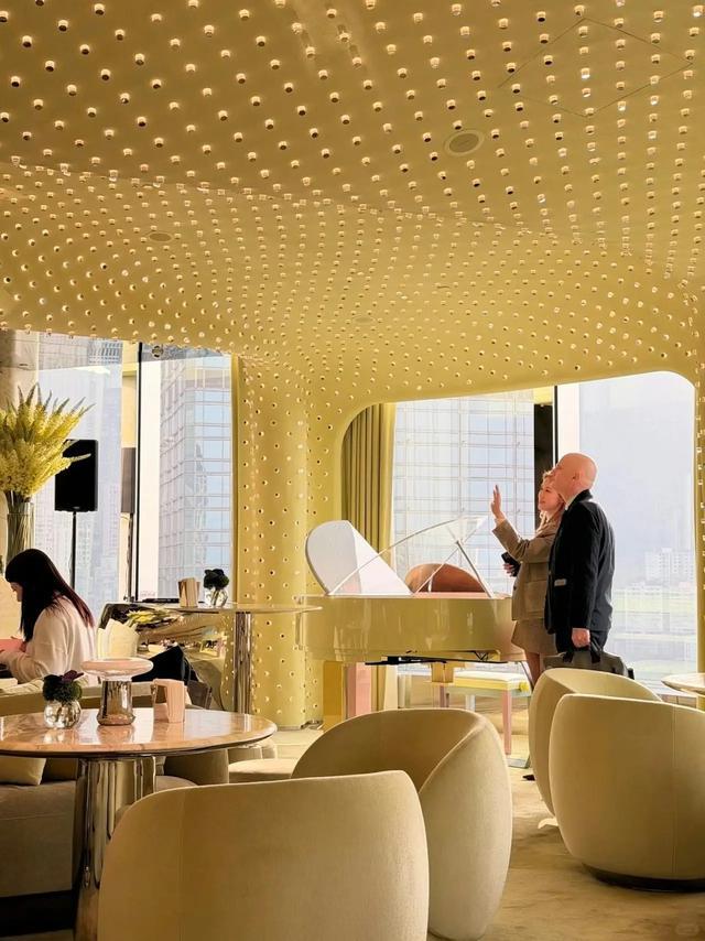 这家酒吧餐厅位于中环新地标The Henderson上,属于李家诚和徐子淇的产业。而徐子淇还是这家餐厅的主理人,她正在和一位外宾讲述着什么。